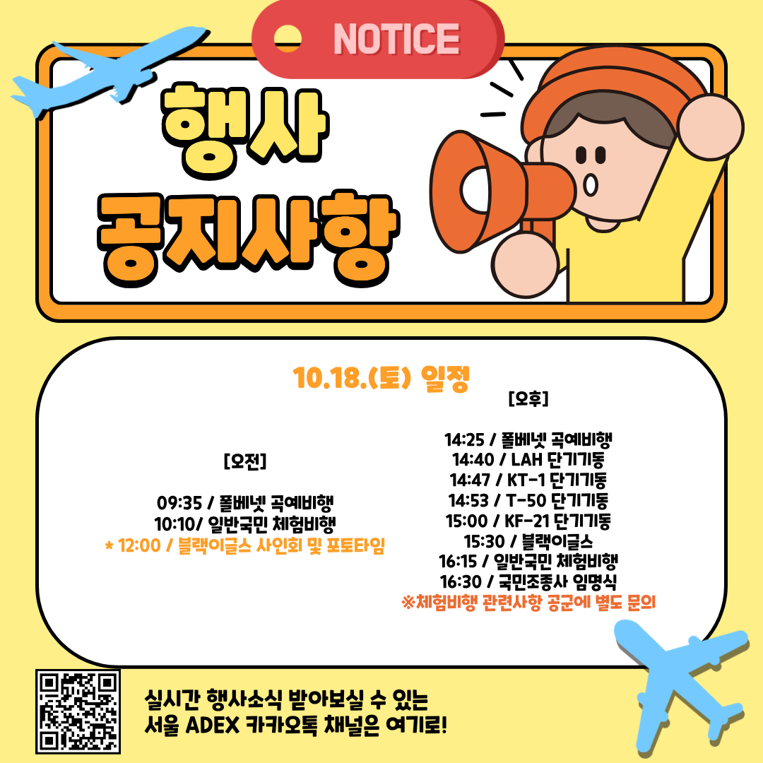 서울 ADEX 2025 비행일정 안내 ('25. 10. 18.)